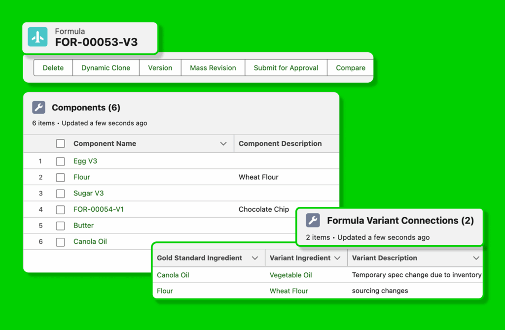 Spec-first PLM centralizes and standardizes NPD forms, streamlining requests and speeding validation. Use Spec Compare to view changes across versions, parent/child records, and costs—gaining a clear picture of data relationships and business impact.