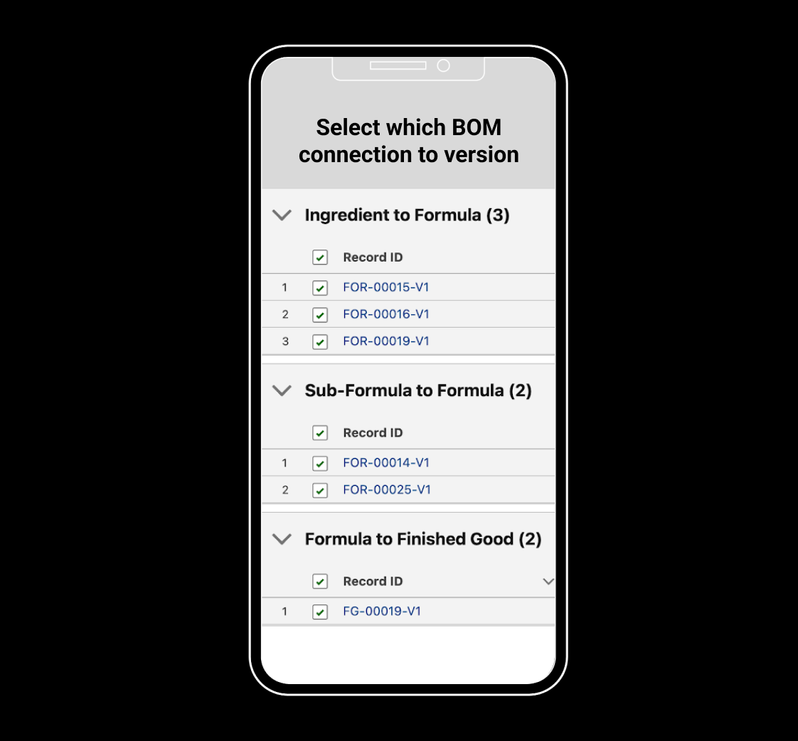 Quickly convert NPD projects into Finished Goods with one click. Control which fields and related data carry over, and export in either direction as needed.