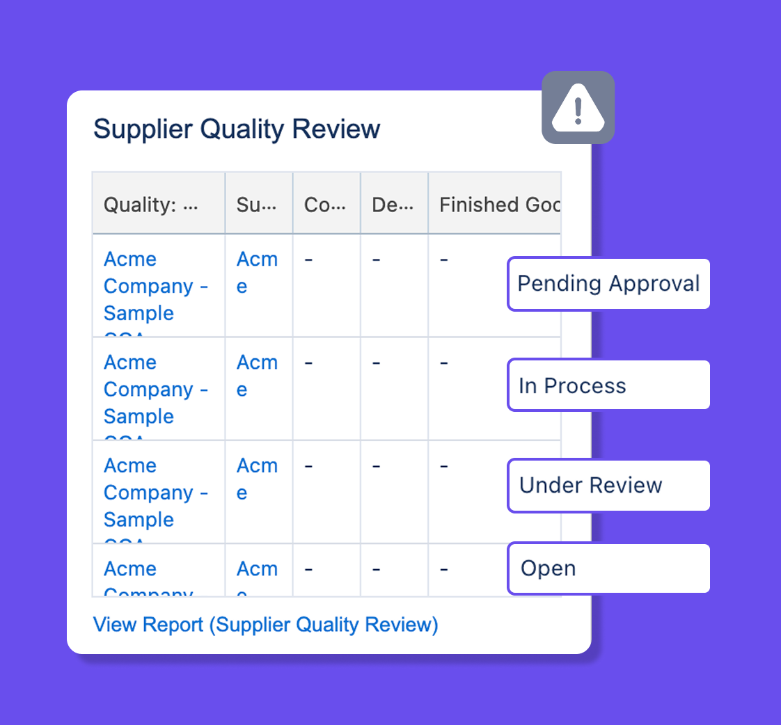 Monitor quality, sustainability, compliance, and more with live reports and dashboards for full visibility.