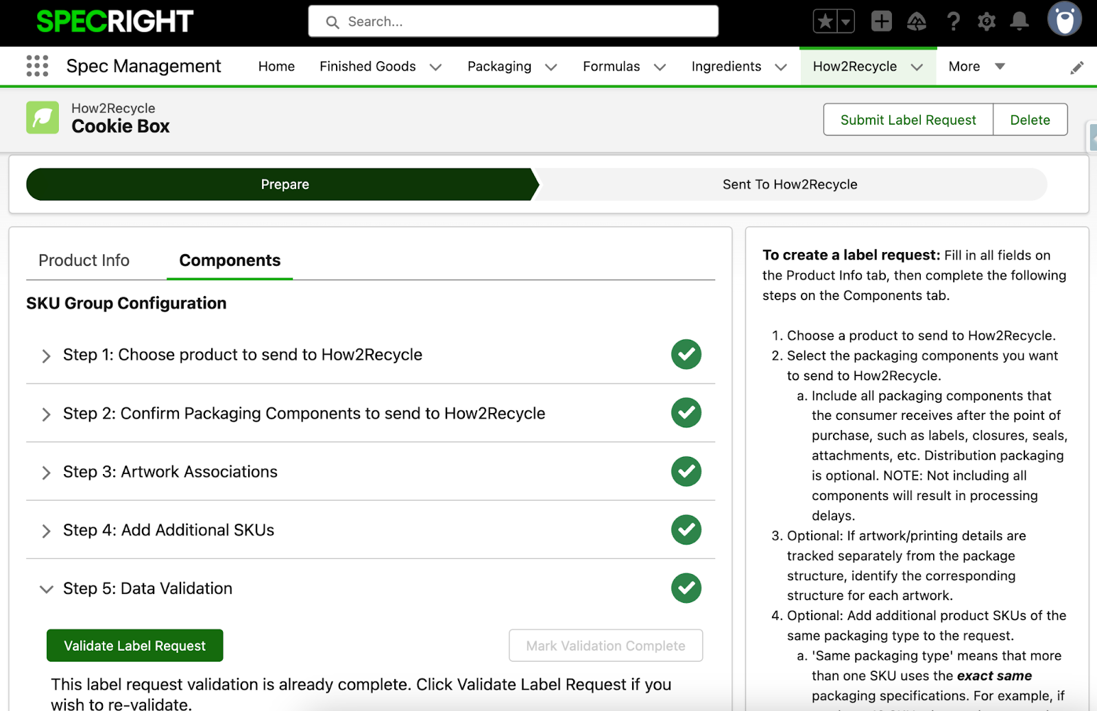 Before, submitting to How2Recycle meant hunting down data in disconnected systems and performing repetitive data entry using manual workflows. The Specright integration changes that, offering a seamless, efficient way to request labels directly from their spec data.